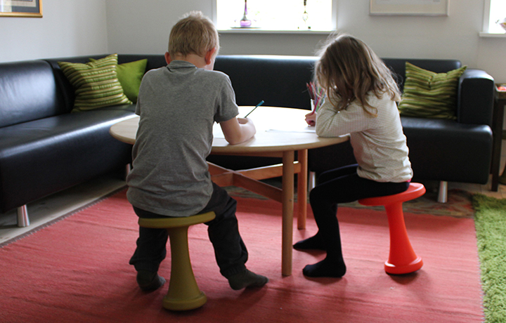 Adults can benefit from sitting on the OneLeg stool when working with children. The height of the stool makes it possible to communicate at eye level with the child and offers the adult the same opportunity to “balance exercise” at the same time.