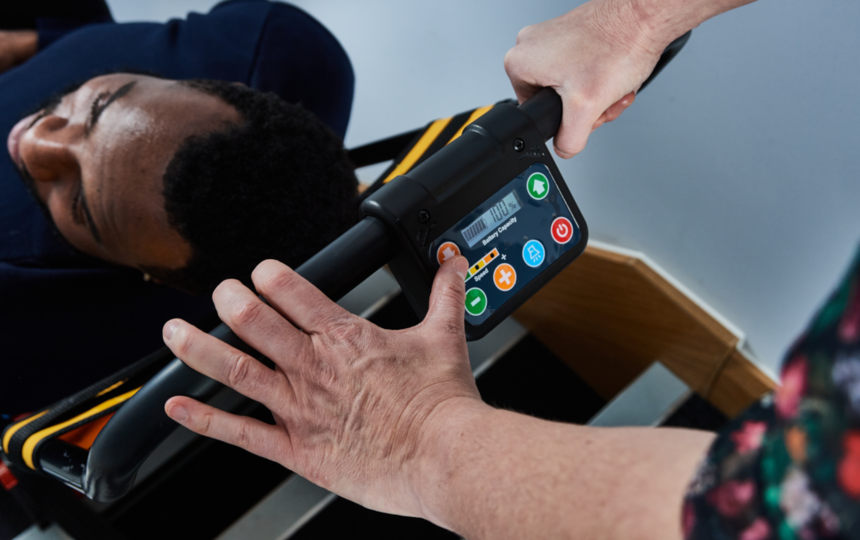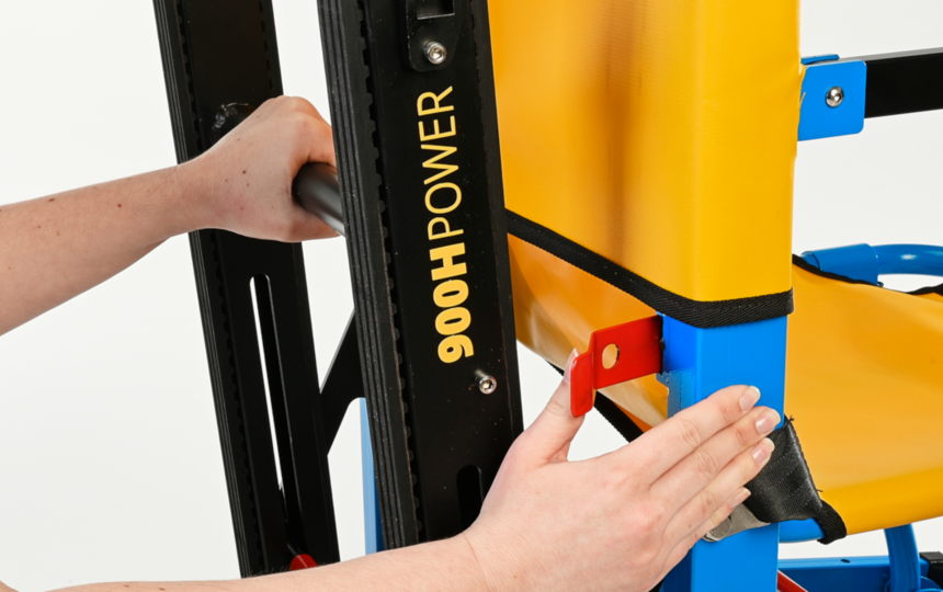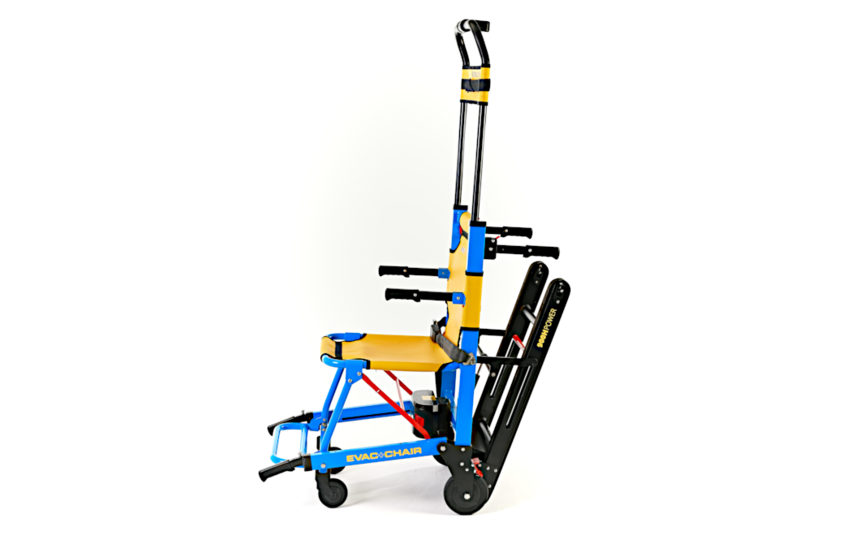 The Evac+Chair 900H is a battery-powered, motorised evacuation chair, which enables a single operator to move non-ambulant individuals up or down multiple flights of stairs, without the need for heavy lifting.