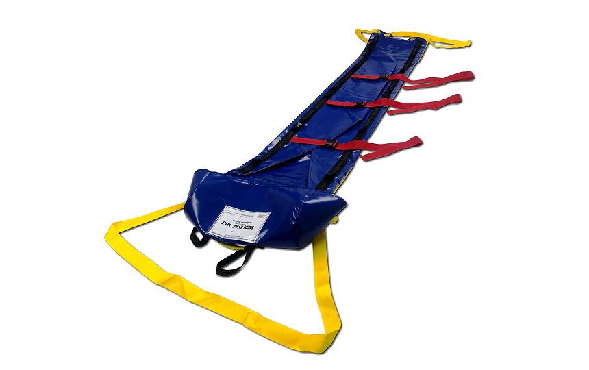 The Medi-Evac Mat is self-contained within its own carry case and can be wall mounted within rooms, on wards or at refuse points for instant access in an emergency. Furthermore its compact design makes it easy to store on emergency vehicles.