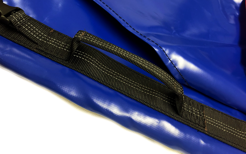 Multiple positioning handles run along all four sides of the mat to enable it to be manoeuvred on landings and in tight space areas. The length of the Medi-Evac Mat can be adjusted to suit the height of the user by using the buckled straps located at the foot end of the Mat.