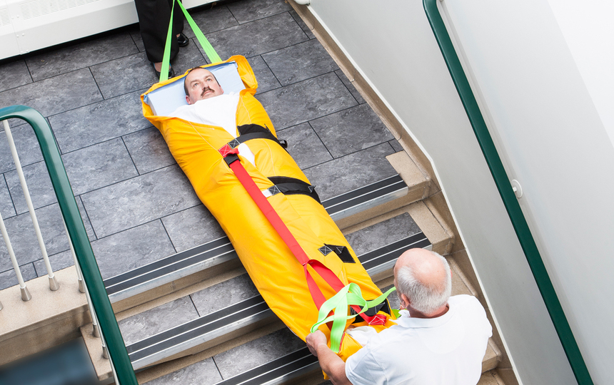 The ResQMat enables the safe, rapid and safely evacuation of people with mobility problems in an emergency. Suitable for use in a wide range of settings including hospitals, care homes, schools, universities and other public and private buildings. The ResQmat is a popular choice as an alternative to chairs, due to its simple design and usability.
