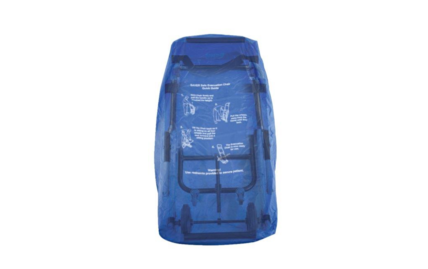 The saver chair folds away to a compact size and comes with a wall bracket, cover and a sign allowing it to be easily identified and stored at refuge points when not in use.