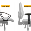 Additional options include, fixed D shaped arms or adjustable arms (adjustable for height, width and depth). Independent tilting seat (standard), seat slide or synchro seat. High, medium (standard) or lumbar pump backrests and a choice of castors to suit the floor surface.