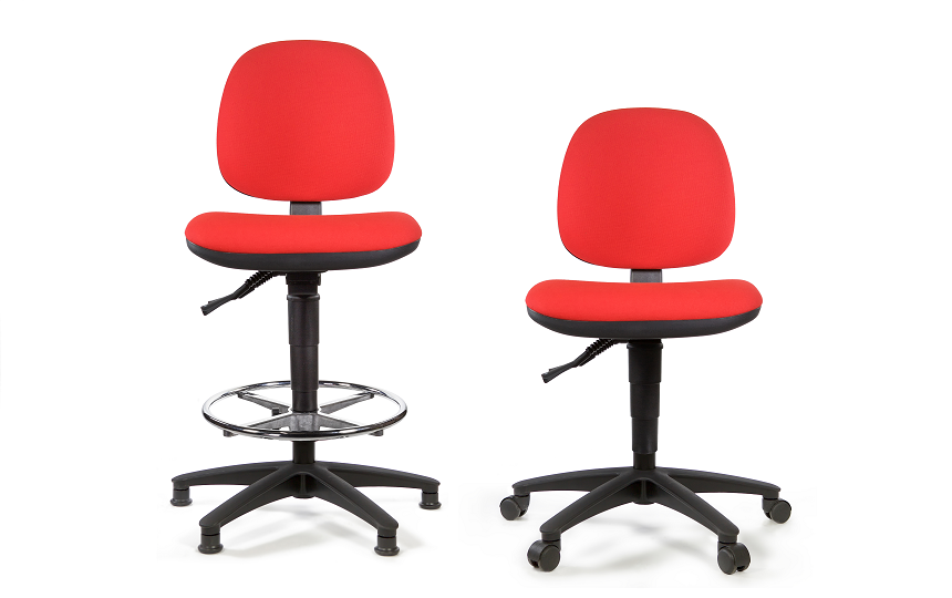 Available as either a high chair with a foot ring support and glides, or as a low chair with castors. Both chairs feature a payload capacity of 150kg and come with scuff resistant nylon coated 5 star base and hygienic gas lift cover.