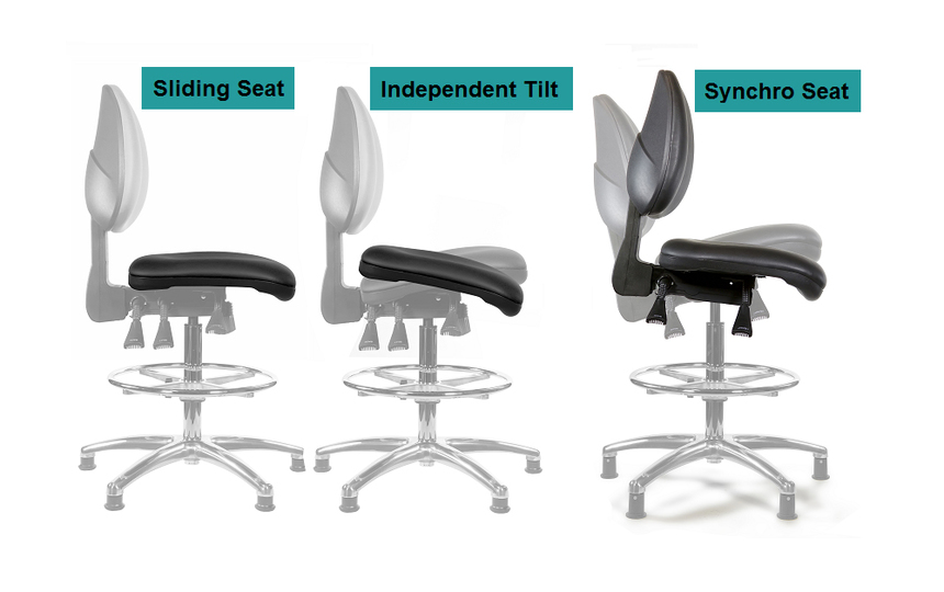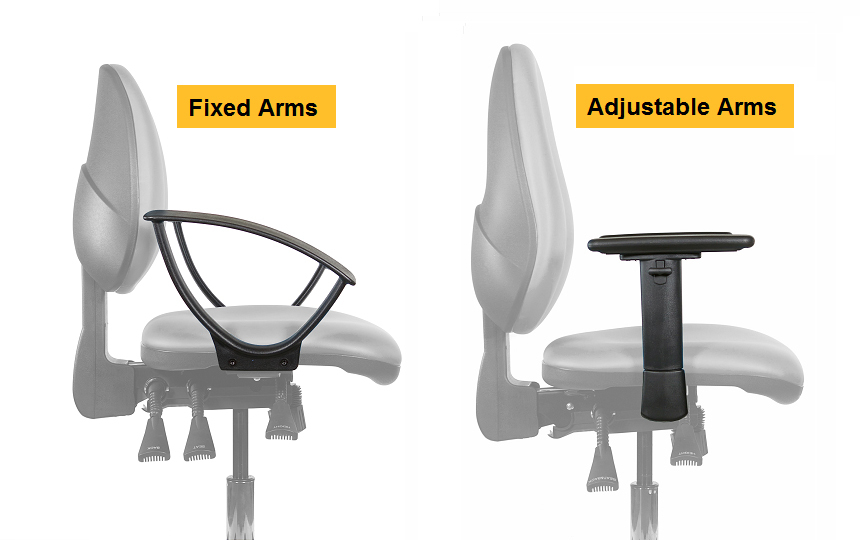 Additional options include, fixed D shaped arms or adjustable arms (adjustable for height, width and depth). Independent tilting seat (standard), seat slide or synchro seat. High, medium (standard) or lumbar pump backrests and a choice of castors to suit the floor surface.