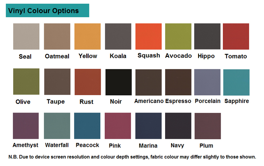 Available in a range of vibrant colours, see colour chart.